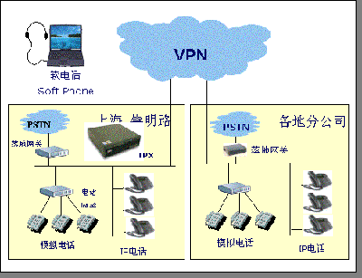 IP 電話、會議、 IP 呼叫服務(wù)中心( IP Call Center )、 IP 虛擬辦事處、分公司等功能。并且可以方便的接入國際、國內(nèi)電信運(yùn)營商
