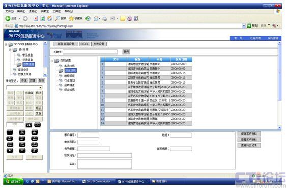 正音科技綜合服務(wù)系統(tǒng)實(shí)現(xiàn)了與Cisco IPCC平臺(tái)的緊密整合,Cisco IPCC底層多媒體通信平臺(tái)通過(guò)CTI技術(shù)與綜合服務(wù)系統(tǒng)實(shí)現(xiàn)通信,實(shí)現(xiàn)諸如個(gè)性化自助服務(wù)(查詢自己的運(yùn)營(yíng)違章情況等車輛情況)、呼叫自動(dòng)定位(根據(jù)來(lái)電號(hào)碼判斷客戶所處最近的救援中心①)等功能?蛻暨可以使用正音科技綜合服務(wù)平臺(tái)所提供的手機(jī)短信功能實(shí)現(xiàn)信息查詢、維修救援、投訴等業(yè)務(wù),甘肅省公路運(yùn)輸管理局也可以是用手機(jī)短信功能提供路況信息、運(yùn)輸政策等信息的發(fā)布。