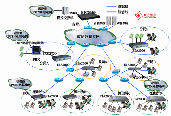 公安系統(tǒng)作為一家話務(wù)量較大的國家職能部門,平時各個分局,各個派出所之間及上下級之間的電話、傳真等交流非常多,每月支付的話費數(shù)目相當(dāng)可觀,公安部門急需找到一種價格更便宜、服務(wù)更周到,同時使用便捷的通話解決方案,以降低辦公費用,提高工作效率。采用了深圳眾方信息的VoIP解決方案,能使得公安部門整體話費節(jié)省了至少50%以上,而且能實現(xiàn)多種業(yè)務(wù)的綜合處理,包括語音、數(shù)據(jù)、視頻、圖像等。