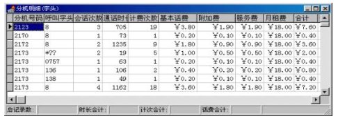 用戶可以撥打話費查詢電話號碼,話費查詢系統(tǒng)會提示用戶輸入查詢密碼,然后提示選擇余額查詢/時段查詢。用戶選擇時段查詢,查詢系統(tǒng)會提示用戶輸入查詢時段,然后自動將該時段內(nèi)的話費統(tǒng)計出來,合成語音,報給用戶。時段話費查詢必須與LANBIRD計費/收費系統(tǒng)配合使用,利用網(wǎng)絡(luò)共享分機話費數(shù)據(jù)表,否則系統(tǒng)將得不到數(shù)據(jù)而無法工作。LANBIRD計費/收費系統(tǒng)可以與查詢繳系統(tǒng)無縫集成,不需任何人工操作。如果采用地三方的計費軟件,則須用手轉(zhuǎn)換,或用我們的自動轉(zhuǎn)換模塊,不過由于不同的計費系統(tǒng),話費存儲格式不同,自動轉(zhuǎn)換模塊需要專門開發(fā)。