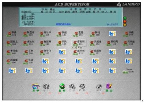 可監(jiān)視客戶服務(wù)平臺(tái)的全部坐席的工作狀態(tài), 包括簽入, 簽出, 空閑,示忙, 正在通話, 等待應(yīng)答, 等待來(lái)話, 用戶掛機(jī), 等待被叫振鈴,