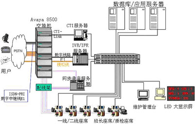 交換機/排隊機:選用AVAYA的S8500交換機作為前端排隊設(shè)備。