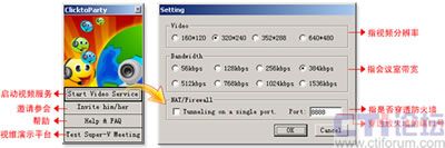 Video Service按鈕,對(duì)方就可以在聊天窗口中收到邀請(qǐng)信息,點(diǎn)擊“接受”按鈕后雙方自動(dòng)啟動(dòng)并進(jìn)入Clicktoparty軟件的主界面。您還可以以同樣的操作步驟,陸續(xù)邀請(qǐng)其他好友或聯(lián)系人加入,之后就可以享受Clicktoparty帶給您的強(qiáng)大功能和美好體驗(yàn),包括專業(yè)級(jí)的音視頻實(shí)時(shí)溝通、多人文字交流及私聊、桌面共享及遠(yuǎn)程協(xié)助、高速的文件傳輸、各種文檔的在線演示和討論等。