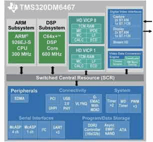 圖3:基于達芬奇技術的TMS320DM6467數字媒體處理器方框圖