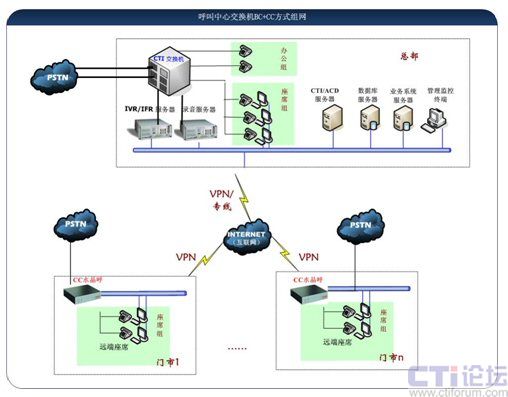 凱撒國(guó)旅分為北京總部、8個(gè)北京各門(mén)市部、上海分公司等。呼叫中心的建設(shè)方式分為總部集中建設(shè)和各門(mén)市點(diǎn)分布組網(wǎng)建設(shè)。中心總部采用的交換機(jī)和BasicCall
