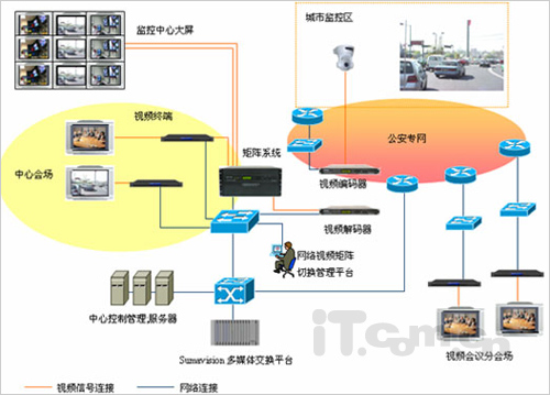針對的公安系統(tǒng)的需求以及上述原則,北京數(shù)碼視訊專門推出了符合公安需求的視頻會議系統(tǒng)版本和專門針對公安行業(yè)的視頻會議解決方案(網(wǎng)絡(luò)圖如下)。整體系統(tǒng)都體現(xiàn)了簡明、高效、清晰、穩(wěn)定可靠的特征。能有效提高指揮決策的效率,突出信息化優(yōu)勢,并應(yīng)付一些突發(fā)事件或特殊情況。遇到緊急場合,如全國犯罪抓捕、救災(zāi)、防汛、傳染性疾病突襲等,可以利用視頻服務(wù)系統(tǒng)及時(shí)了解情況、發(fā)布決策以及協(xié)調(diào)工作等等。