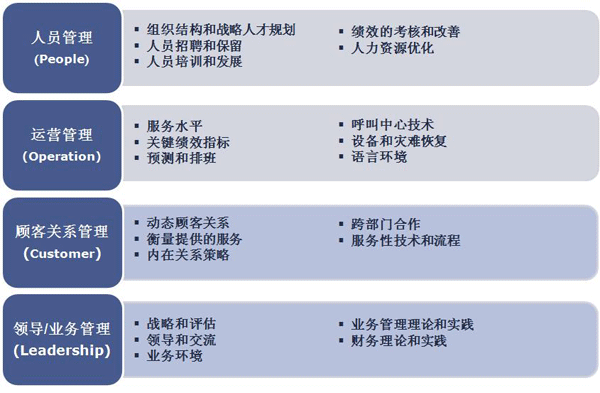 呼叫中心中高層管理人員認證是為呼叫中心行業(yè)建立自己的“黃埔軍校”。通過一系列的培訓(xùn),包含人員管理,運營管理,顧客關(guān)系管理和領(lǐng)導(dǎo)/業(yè)務(wù)管理,來為呼叫中心行業(yè)培養(yǎng)合適的中高層管理人員。
