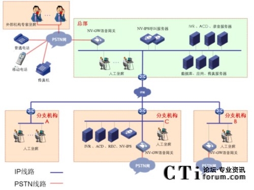 NV-IPS呼叫中心充分利用IP呼叫中心部署簡單、靈活的優(yōu)勢,支持多種應(yīng)用模式:集中接入,集中處理;集中接入,分散處理;分散接入,集中處理;分散接入,分散處理,實(shí)現(xiàn)分布式呼叫中心負(fù)荷分擔(dān)和資源共享。