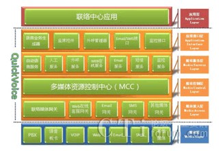- 應(yīng)用接口層,上層應(yīng)用必須通過應(yīng)用接口調(diào)用各種媒體服務(wù),確保了應(yīng)用對(duì)下層平臺(tái)的合法調(diào)用,從而保證整個(gè)平臺(tái)的穩(wěn)定性。QuickVoice提供了豐富的簡(jiǎn)單易用的應(yīng)用接口,使用戶可以最大限度發(fā)揮平臺(tái)功能,構(gòu)筑任意復(fù)雜的呼叫中心應(yīng)用