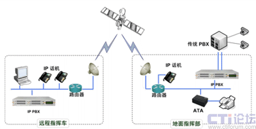 在有關(guān)部隊(duì)的應(yīng)用案例中,有兩方面比較常見,應(yīng)用也比較廣泛。首先是借助衛(wèi)星的遠(yuǎn)程指揮通訊,我們?yōu)榈孛鏅C(jī)關(guān)與遠(yuǎn)程指揮車之間架設(shè)起溝通的橋梁,除了電話、傳真等基本業(yè)務(wù),還通過IP-PBX系統(tǒng)提供了多方會(huì)議、語音留言、熱線電話等擴(kuò)展業(yè)務(wù),在即使是雙星四跳的高延時(shí)環(huán)境下建立起穩(wěn)定的語音通信,保障了部隊(duì)指揮的有效下達(dá)。
