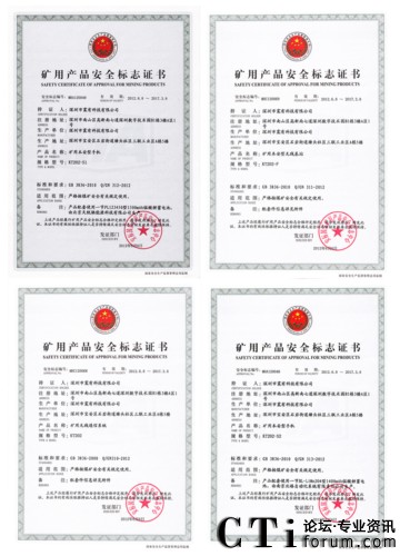 CTI論壇(ctiforum)6月15日消息(記者 楊佳林):震有科技順利通過安標(biāo)國(guó)家礦用產(chǎn)品安全標(biāo)志中心頒發(fā)礦用無線通信系統(tǒng)、礦用本安型無線基站、礦用本安型手機(jī)S1、礦用本安型手機(jī)S2的四項(xiàng)礦用產(chǎn)品安全標(biāo)志證書,這標(biāo)志著震有科技KT202礦用融合通信系統(tǒng)獲得煤礦安全領(lǐng)域的通行證,為公司大力拓展煤礦能源市場(chǎng)奠定了堅(jiān)實(shí)有利的基礎(chǔ)。