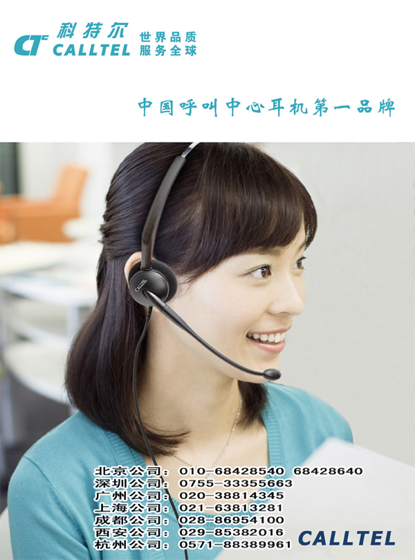 泰訊通訊集團公司(北京、廣州、上海、成都、西安)屬下的CALLTEL科特爾品牌,始創(chuàng)于2000年,生產(chǎn)基地位于廣東省東莞市,目前是中國呼叫中心耳機行業(yè)的第一品牌,在以下領(lǐng)域取得了中國乃至全球領(lǐng)先的市場地位。2005年-2009年,CALLTEL連續(xù)五年保持中國銷量第一的優(yōu)勢,開創(chuàng)了國產(chǎn)耳機占據(jù)市場主導地位的新紀元,在中國呼叫中心耳機發(fā)展史上樹立起一座新的里程碑,CALLTEL從而毫無爭議地成為中國呼叫中心耳機行業(yè)的第一品牌。
