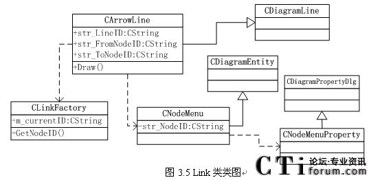 節(jié)點(diǎn)名稱和一個(gè) 節(jié)點(diǎn)名稱。類圖如圖3.5所示,CLinkFactory類的作用是一個(gè)獲取當(dāng)前節(jié)點(diǎn)名稱,CNodeMenu類是菜單(Menu)