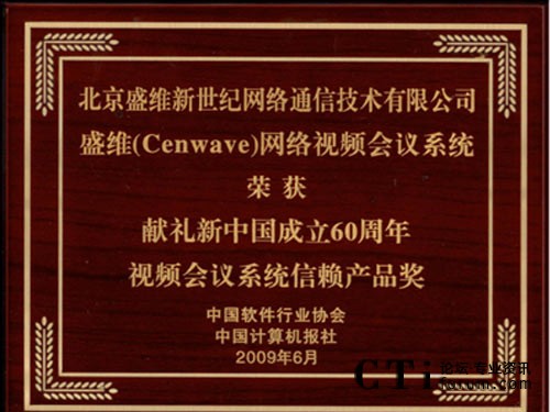 在剛剛結(jié)束的第十三屆中國(guó)國(guó)際軟件博覽會(huì)(以下簡(jiǎn)稱軟博會(huì))上,盛維(Cenwave)新世紀(jì)應(yīng)邀出席了2009中國(guó)軟件服務(wù)業(yè)發(fā)展高峰論壇暨開(kāi)幕式,并且核心產(chǎn)品盛維(Cenwave)網(wǎng)絡(luò)視頻會(huì)議系統(tǒng)榮膺“獻(xiàn)禮新中國(guó)成立60周年•中國(guó)軟件行業(yè)視頻會(huì)議系統(tǒng)信賴產(chǎn)品獎(jiǎng)”。這一經(jīng)過(guò)企業(yè)申報(bào)、候選投票、專家評(píng)審、發(fā)布頒獎(jiǎng)等嚴(yán)格流程評(píng)選出來(lái)的獎(jiǎng)項(xiàng),傳達(dá)了用戶的真實(shí)心聲,反映了盛維(Cenwave)網(wǎng)絡(luò)視頻會(huì)議系統(tǒng)已經(jīng)被越來(lái)越多的客戶所信任。