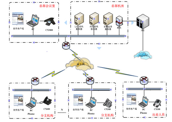 在方案的推進(jìn)過程中,我們在各大會議室部署了CX3000、在桌面分別部署了CX600與IP331。通過這些終端的自身的優(yōu)勢及與系統(tǒng)的配合,實(shí)現(xiàn)了完整的電話體驗(yàn)、PSTN無縫結(jié)合、LYNC完整的企業(yè)級語音功能、 高清晰語音質(zhì)量 、專業(yè)的語音會議等用戶需求。現(xiàn)在此方案在鳳凰網(wǎng)的會議室及桌面的應(yīng)用效果良好,場景應(yīng)用圖如下: