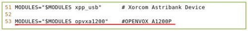 找到 TOPDIR_MODULES= 開(kāi)頭的這一行,添加opvxa1200 ,保存退出