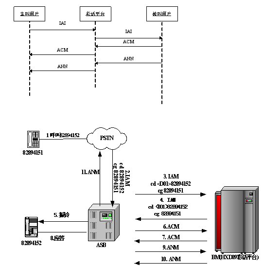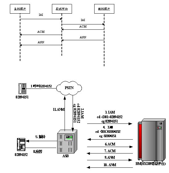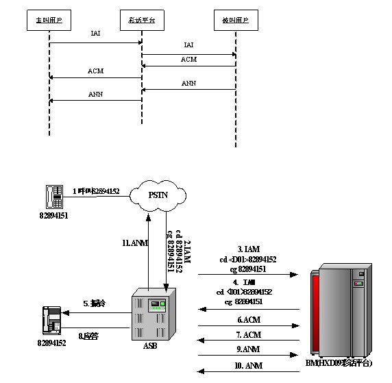 被叫彩話是指呼叫到達(dá)被叫方交換機(jī)時(shí),被叫方交換機(jī)檢測(cè)被叫擁護(hù)是否設(shè)置彩話業(yè)務(wù),如果沒(méi)有甚至彩話業(yè)務(wù),則直接向被叫用戶發(fā)起呼叫,當(dāng)被叫用戶摘機(jī)應(yīng)答后將雙方連接起來(lái)通話;如果設(shè)置了彩話業(yè)務(wù),則被叫方交換機(jī)將做兩個(gè)動(dòng)作:第一為向被叫用戶發(fā)起呼叫,第二為向彩話平臺(tái)發(fā)起呼叫,當(dāng)被叫用戶摘機(jī)應(yīng)答后,在被叫交換機(jī)上將產(chǎn)生一個(gè)會(huì)議,將主叫用戶、被叫用戶和彩話平臺(tái)加入到會(huì)議中。