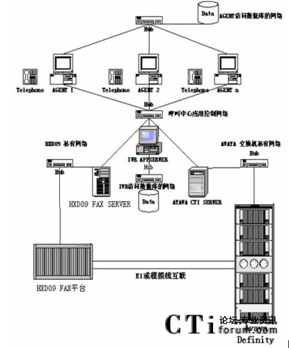 根據(jù)客服系統(tǒng)的容量,坐席多特點(diǎn),一般都采用國外品牌交換機(jī)做為接入設(shè)備,用HXD09設(shè)備作FAX或IVR系統(tǒng)?头臉I(yè)務(wù)主要為語音和傳真。HXD09系統(tǒng)在傳真和語音處理處理上在國內(nèi)產(chǎn)品的技術(shù)和價格上都有巨大優(yōu)勢。