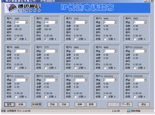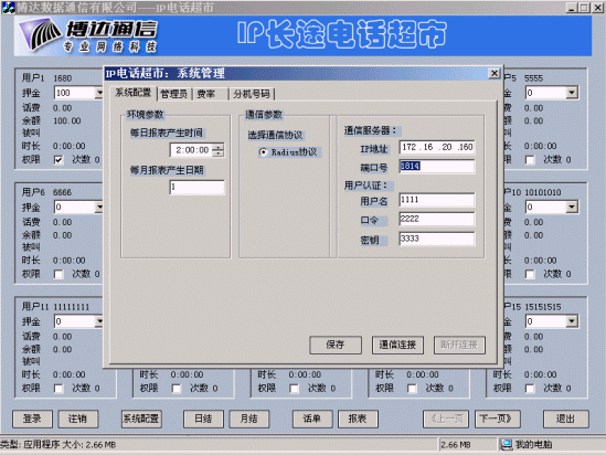 SuperB語音計費(fèi)管理系統(tǒng)IP超市版 專用于基于VoIP技術(shù)IP超市的語音計費(fèi)關(guān)鍵軟件(最大可管理10000個語音終端、網(wǎng)關(guān),內(nèi)置博達(dá)Radius Server)