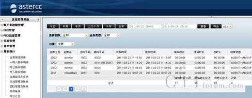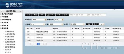 asterCC自動(dòng)生成的各種數(shù)據(jù)報(bào)表,讓您能很快的從成千上萬的通話中分析到關(guān)鍵的信息。這樣銷售業(yè)績及客服質(zhì)量的情況便清晰可見。根據(jù)豐富的數(shù)據(jù)報(bào)表,給決策者做戰(zhàn)略性市場定位提供有力的數(shù)據(jù)參考,對業(yè)務(wù)的開展也起到了促進(jìn)作用,同時(shí)也便于進(jìn)行員工的績效考核。