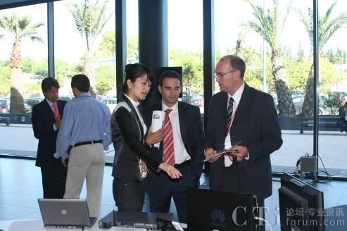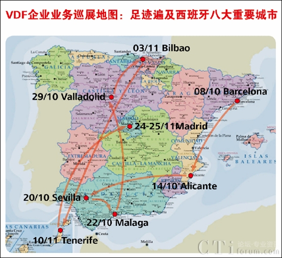 Vodafone 09企業(yè)業(yè)務(wù)巡展是Vodafone攜手10家重要合作伙伴和28家SP針對西班牙企業(yè)用戶舉行的一個大型巡展,整個展會歷時兩個月,以西班牙的經(jīng)濟(jì)文化中心Barcelona為起點,途徑Alicante、Sevilla、Malaga、Valladolid、Bilbao、Tenerife,最后于11月24-25號在西班牙首府Madrid隆重謝幕。共有1萬多人、五千多家企業(yè)參加了本次展會,受邀企業(yè)覆蓋到金融、貿(mào)易、電信、交通、建筑、服務(wù)、醫(yī)療保健等重要行業(yè),其中大都為移動辦公需求旺盛需要保持實時協(xié)同的中小型企業(yè)。展會期間,華為歐洲地區(qū)部多位高層領(lǐng)導(dǎo)親臨展會現(xiàn)場指導(dǎo)工作,包括Vodafone系統(tǒng)部副總Edward Chan和張文林、代表處代表謝新平、歐洲軟件業(yè)務(wù)部領(lǐng)導(dǎo)林劼。領(lǐng)導(dǎo)們和客戶親切交流,并廣泛了解了其他SP展出的多項創(chuàng)新業(yè)務(wù)。
