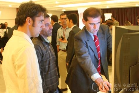 市場工程“City Widget”也是本次展會當(dāng)中的一大亮點!癈ity Widget”將政府信息、政務(wù)溝通搬上了手機,從此市民與市長溝通更加便利!其主要功能包括了城市/政府黃頁、市長熱線和城市新聞。此項目涉及政府形象和施政理念,Castellar市市長Ignasi先生極為關(guān)注,興致勃勃地觀看了業(yè)務(wù)演示,連連稱贊道:“Good job!I like it very much!”,并計劃10月20號左右在Castellar市做新聞發(fā)布和業(yè)務(wù)推廣會!