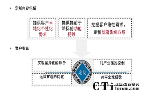 可定制服務(wù)主要體現(xiàn)在三個(gè)層面,一個(gè)是定制化服務(wù),通過全國(guó)10多個(gè)本地定制開發(fā)中心對(duì)客戶提供貼身二次開發(fā)服務(wù),支撐客戶更精細(xì)運(yùn)營(yíng)其客服系統(tǒng),另一個(gè)是定制化路標(biāo),定制化創(chuàng)新系統(tǒng)方案,即通過華為MKT、行銷、開發(fā)部門對(duì)客戶價(jià)值需求的深度分析,將客戶需求去粗存精、去偽存真、由表及里、由此及彼“定制提煉”出來(lái),成為我們產(chǎn)品和方案的路標(biāo)。