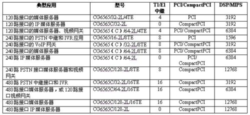 CG 6565系列產(chǎn)品體系設(shè)計在單塊板卡上集成了PSTN接口、電信協(xié)議、全面的IVR功能、全雙工回音消除、語音編碼、傳真處理、會議應(yīng)用、視頻處理、快速以太接口和數(shù)據(jù)包協(xié)議。這種集成產(chǎn)生了經(jīng)濟(jì)型、可擴(kuò)展的系統(tǒng)平臺,可以滿足OEM供應(yīng)商對120路接口以上新一代融合應(yīng)用解決方案的研制需求。