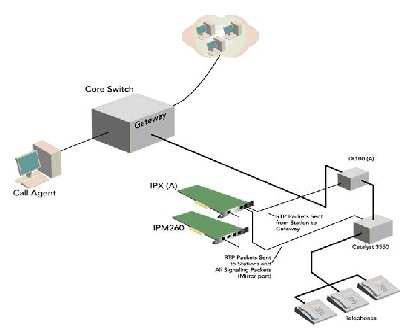 SmartWORKS IPX由Ai-Logix研發(fā)的專用于IP電話錄音的重要產(chǎn)品,具有數(shù)據(jù)包過濾及轉(zhuǎn)發(fā)媒體包的功能。IPX可支持多種IP協(xié)議,設(shè)有3個(gè)接口,其中2個(gè)用以監(jiān)控話機(jī),話機(jī)數(shù)量可多達(dá)120個(gè),監(jiān)控?cái)?shù)據(jù)包括上行及下行的RTP;第3個(gè)接口用以媒體輸出。IPX和IPM260配合使用,將截取的媒體數(shù)據(jù)包轉(zhuǎn)發(fā)給該卡進(jìn)行處理,從而可以完成錄音全過程。