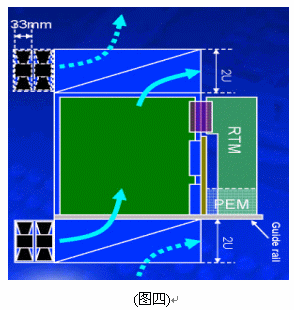 另外在機架內(nèi)的放置空間上,42U的標(biāo)準(zhǔn)機架里可以放3臺12~14U機箱,若將機箱降至10U則可以放置4臺,這樣可以增加整體空間的利用率,所以有了10U機箱的設(shè)計需求。在各種不同高度的機箱設(shè)計中,風(fēng)扇散熱系統(tǒng)的放置位置、方式與總散熱效能能夠達(dá)到200*14=2800W,將會是ATCA機箱設(shè)計所要考慮的最重要因素之一,尤其是在10U的機箱設(shè)計上。