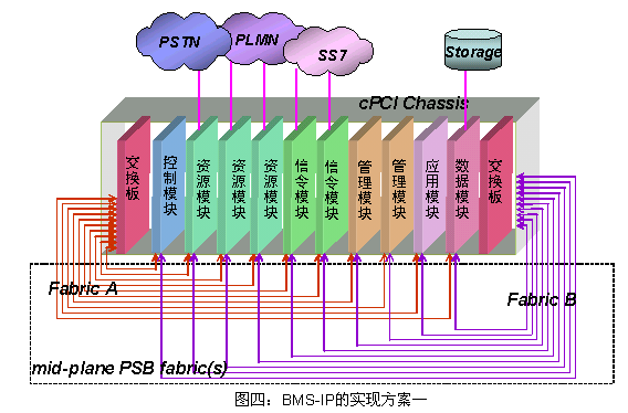 模塊化通信組件的解決方案提供了開(kāi)放式標(biāo)準(zhǔn)架構(gòu),具有高可靠性、高擴(kuò)展性以及高性能,采用Commercial On The Shelf(COTS)的方式,減少了研發(fā)費(fèi)用,縮短投入市場(chǎng)的時(shí)間,在電信領(lǐng)域正得到越來(lái)越多的應(yīng)用。下面針對(duì)BMS-IP系統(tǒng)的提供基于CompactPCI的兩種實(shí)現(xiàn)方案。