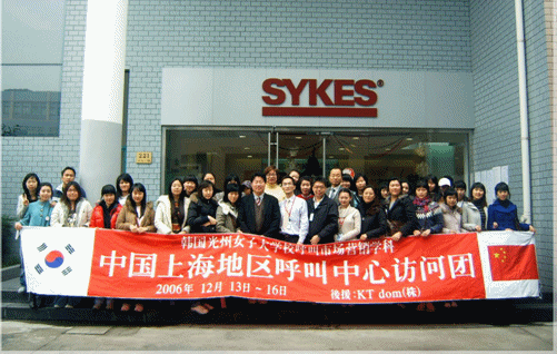 2006年12月14日上午,韓國光州女子大學(xué)呼叫市場營銷系30多名大學(xué)學(xué)生 在鄭成教授等的帶領(lǐng)下,專程來滬參觀訪問賽科斯(Sykes)公司。韓國光州女子大學(xué)是韓國第一個設(shè)立呼叫市場營銷專業(yè)的大學(xué),該專業(yè)為四年制本科,學(xué)生畢業(yè)后主要從事客戶服務(wù)行業(yè)的基層管理崗位工作。