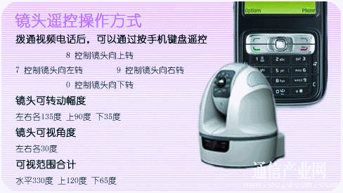 前端攝像頭可以上下左右靈活轉(zhuǎn)動,隨意安放在家中、商鋪中的合適位置。用戶的手機(jī)無需安裝客戶端軟件,即可通過視頻電話直接呼叫前端攝像頭,然后通過12個數(shù)字鍵控制前端云臺轉(zhuǎn)動、變焦、錄像、回放等操作。