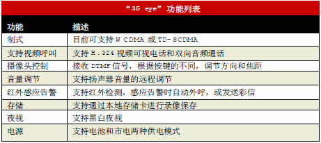 “3Geye”業(yè)務(wù)是由上海貝爾股份有限公司開發(fā)的一個針對家庭及小型商品市場的視頻監(jiān)控類業(yè)務(wù),它利用3G中獨(dú)有的64K視頻電路域,建立起用戶與前端攝像頭的視頻電話,從而達(dá)到視頻監(jiān)控的目的。