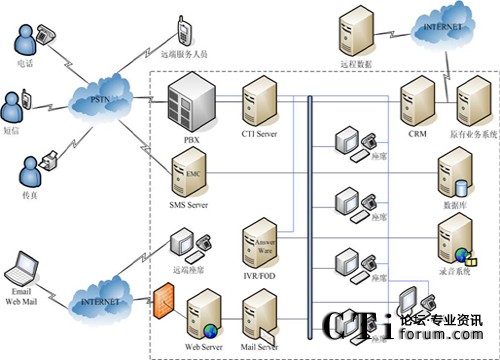 本系統(tǒng)提供開放接口功能,可以搭配企業(yè)客戶既有的客戶關懷系統(tǒng)(CRM)或者客戶資源管理系統(tǒng)(ERP)使用,同時支持計算機連接多條線路。
