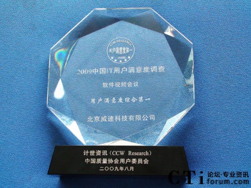 CTI論壇(ctiforum)09月03日消息: 在27日剛剛結(jié)束的“2009中國IT用戶滿意度年會”上,威速科技喜獲“2009軟件視頻會議IT用戶滿意度綜合第一”大獎。憑借在產(chǎn)品與服務(wù)方面多年的優(yōu)異表現(xiàn),成立10周年的威速科技連續(xù)9年獲此殊榮,這也充分彰顯了威速科技已成為視頻會議軟件市場上公認(rèn)的滿意品牌。