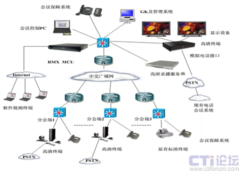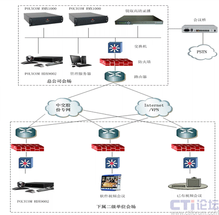 在信息高度發(fā)達(dá)的今天,企業(yè)辦公網(wǎng)絡(luò)化、自動(dòng)化和信息共享已成為衡量一個(gè)企業(yè)現(xiàn)代化管理水平的標(biāo)志。隨著中交集團(tuán)信息化的發(fā)展,急需一套視頻會(huì)議系統(tǒng)實(shí)現(xiàn)總部和下屬公司之間的及時(shí)的信息溝通。經(jīng)過(guò)對(duì)自身使用需求、特點(diǎn)的分析,中交集團(tuán)決定直接選用業(yè)界最新的視頻會(huì)議高清標(biāo)準(zhǔn)建設(shè),而且要和集團(tuán)二級(jí)單位已構(gòu)建的品牌不一的標(biāo)清系統(tǒng)互連。