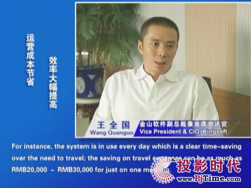 “以前從北京出發(fā)參加一次深圳的會議,往返至少要耗費6小時,而且往返機票也是一筆不小的開支。采用新系統(tǒng)后,公司出差的機會明顯減少了,即使粗略統(tǒng)計,節(jié)省的成本也是相當可觀的。另外,倡導企業(yè)公民責任是全社會共同關(guān)注的話題,金山公司也在通過如采用視頻通信系統(tǒng)這樣的行動積極響應(yīng)‘綠色企業(yè)’的號召!