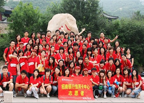瞧瞧我們這架勢,時(shí)刻都不忘給自己是來自招商銀行的志愿者。在長城上擺CMB(China Merchants Bank),真是太有創(chuàng)意啦!