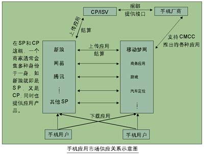 在這樣一個全新的銷售模式下,運(yùn)營商的作用也越發(fā)凸顯出來!皦艟W(wǎng)是一個大的平臺,SP是個小平臺,SP再通過與CP建立合作,進(jìn)而將整個應(yīng)用市場與終端連接起來,F(xiàn)在,我們?nèi)康膽?yīng)用都放到夢網(wǎng)上面了。”北京報童電子商務(wù)公司的一個工作人員說。移動夢網(wǎng)的建立,事實(shí)上在手機(jī)廠商、應(yīng)用開發(fā)商、用戶三者之間搭了一個橋梁,將各種手機(jī)應(yīng)用集中在一個門戶網(wǎng)站,用戶需要時,只需登陸到夢網(wǎng)上面,點(diǎn)擊相關(guān)的網(wǎng)頁,就可隨時下載所需要的應(yīng)用。