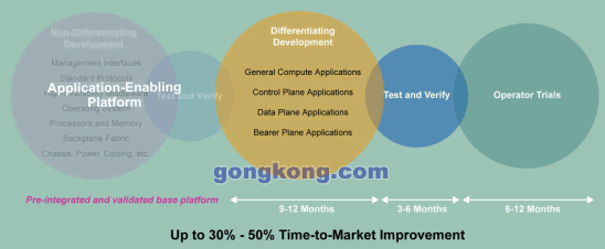 摩托羅拉將這種預(yù)集成并驗證的基礎(chǔ)平臺稱之為面向應(yīng)用的平臺,采用這個方式可以極大的加快進入市場的速度,使TEM專注于開發(fā)自己產(chǎn)品的差異化功能與內(nèi)容。基于標(biāo)準(zhǔn)的平臺同時具有豐富的核心能力,從硬件,OS到高可用中間件與管理接口,它不是為單一應(yīng)用而設(shè)計,而是為廣闊市場準(zhǔn)備的通用平臺。