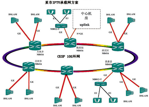 隨著IPTV業(yè)務(wù)的迅速發(fā)展,IPTV承載網(wǎng)建設(shè)顯得尤其重要。IPTV承載的最主要內(nèi)容包括VOD(視頻點(diǎn)播)及直播電視頻道節(jié)目。為保證IPTV的收看質(zhì)量與目前的有線電視網(wǎng)收看質(zhì)量相當(dāng),IPTV承載網(wǎng)必須要在網(wǎng)絡(luò)帶寬、網(wǎng)絡(luò)可靠性、頻道切換時延、網(wǎng)絡(luò)QoS等方面提供保證。