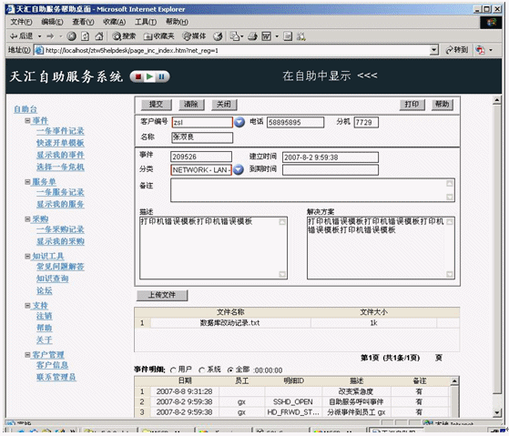 事件記錄應(yīng)該在某個服務(wù)臺工具中記錄和跟蹤,該工具最好是作為集成的服務(wù)管理工具集的構(gòu)成部分。該工具應(yīng)該在引發(fā)新的事件時提供最基本的事件記錄。比如為了幫助提高效率,當(dāng)你在天匯幫助臺的用于記錄事件的事件窗口中輸入請求發(fā)起者的姓名時,利用客戶數(shù)據(jù)庫可以自動填充諸如位置、部門和聯(lián)系詳細(xì)信息等字段。天匯幫助臺還支持使用計算機(jī)電話集成