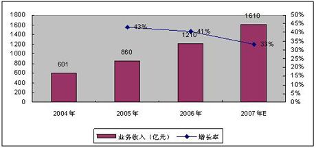 賽迪顧問預測2007年底,我國增值電信業(yè)務(wù)市場收入有望超過1600億元,增速高達33%,移動增值業(yè)務(wù)收入規(guī)模將達980億元左右,占比高達61.25%。2007年增值電信業(yè)務(wù)經(jīng)營企業(yè)的數(shù)量將會出現(xiàn)負增長,量的下降帶來質(zhì)的提升,表明增值電信業(yè)市場已經(jīng)趨于良性發(fā)展。