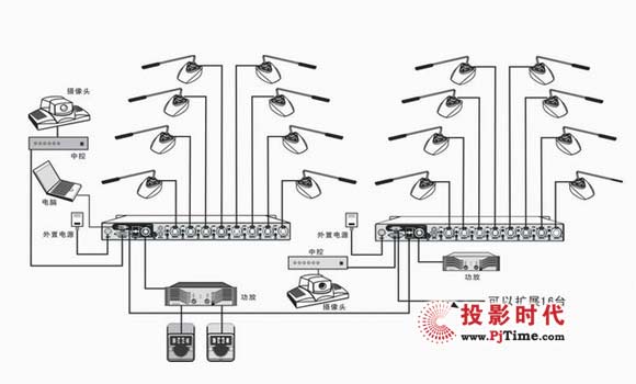 “手拖手”型和“自動混音型”會議系統(tǒng)是會議系統(tǒng)發(fā)展過程中出現(xiàn)的兩種模式,手拖手型會議系統(tǒng)較適合于經(jīng)常裝拆移動且傳聲器數(shù)量較多的“討論會”場合。而在配置有專業(yè)音響設(shè)備且具備一定建聲條件的廳堂,講臺上布置多只傳聲器以備多人發(fā)言,或參與討論人數(shù)并非特別多的場所,采用自動混音型會議系統(tǒng)則能獲得較佳的音質(zhì)效果。