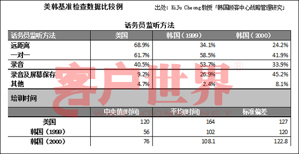上圖是全南大學(xué)教授Ki Ju Cheong調(diào)查比較韓國和美國客服中心后的報告書的一部分。Ki Ju Cheong教授自稱是因分析客服中心標(biāo)準(zhǔn)指數(shù)聞名于世的美國Purdue大學(xué)安東博士的學(xué)生。通過這個圖表可以簡單看出韓國客服中心經(jīng)營的改善狀況。