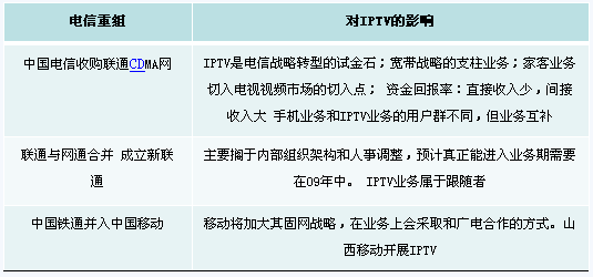 3)中國電信發(fā)展IPTV的強勢推進和機遇