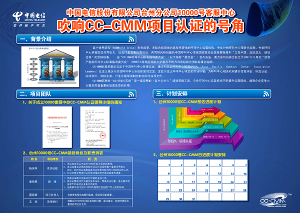 在為期四天(2009.1.13—2009.1.16)的最終評審中,專家們采用現(xiàn)場觀察、員工座談、文件審閱等多種形式對臺州電信10000號客服中心的運營現(xiàn)狀進行全方位考評,高度評價了客服中心在短短三個月中取得的進步。最終,認證專家一致通過授予臺州電信10000號呼叫中心能力成熟度模型CC-CMM應(yīng)用級認證。