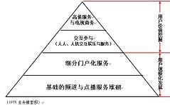 擁有4億多注冊(cè)用戶的騰訊,占有中國(guó)即時(shí)通信80%的市場(chǎng)份額,互聯(lián)網(wǎng)行業(yè)贏家通吃的定律顯露無(wú)疑,騰訊在海量用戶群基礎(chǔ)上開(kāi)發(fā)的各種業(yè)務(wù)都在行業(yè)排名前列。當(dāng)電視服務(wù)的規(guī)模用戶群得以穩(wěn)固,基于用戶規(guī)模之上的多元化服務(wù)集成成為可能,對(duì)電視服務(wù)形成高度依賴(lài)的用戶群具備了價(jià)值挖掘的條件。人人交互、人機(jī)交互依托基礎(chǔ)的電視分眾門(mén)戶化應(yīng)用,形成了最初的用戶使用習(xí)慣;依托電視分眾門(mén)戶化集成的積累,建立用戶識(shí)別、用戶分析、收視分析、用戶數(shù)據(jù)交換的技術(shù)體系,用以支撐未來(lái)多元化娛樂(lè)與服務(wù)的開(kāi)發(fā);贗PTV的交互能力,依托電視終端的易用性與舒適性,用戶價(jià)值、終端價(jià)值被充分挖掘,電視服務(wù)開(kāi)始對(duì)其他媒介形式(含互聯(lián)網(wǎng))的用戶形成吸納。圍繞交互、商務(wù)需求的電子貨幣體系逐漸完善,電視進(jìn)入可有效運(yùn)營(yíng)、可便捷支付的良性的產(chǎn)業(yè)循環(huán),IPTV多元化業(yè)務(wù)之門(mén)打開(kāi)。