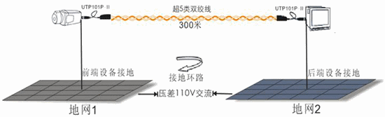 第二種方案是使監(jiān)控傳輸上的設(shè)備各點(diǎn)的相對地的電勢相同,一種方法是用一根導(dǎo)線把前端設(shè)備與后端設(shè)備的地連起來,但導(dǎo)線本身也存在電阻,效果并不是非常好,并且還需另外布線,增加了工程的復(fù)雜性;第二種方法是采用屏蔽的雙絞線,可是必然會對視頻信號有損耗,從而縮短傳輸距離。
